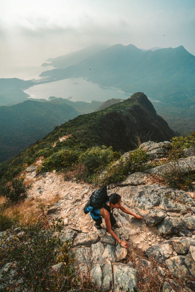This ridge-hike reminded me of a lot of the hikes in Hawaii that take you along the jagged ridges to a summit. There were never any moments of danger but this hike would be among the most exhilarating hikes in Hong Kong with the basic bouldering and the rugged trail. It’s definitely the trail to pick if you love adventure and are wondering what to do in Hong Kong?