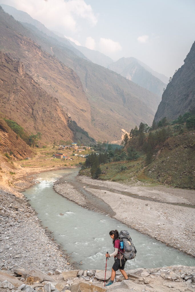 • Day 1, Machhakholagaon (862m) to Jagat (1,330m) – Distance: 26km, Incline 1512m