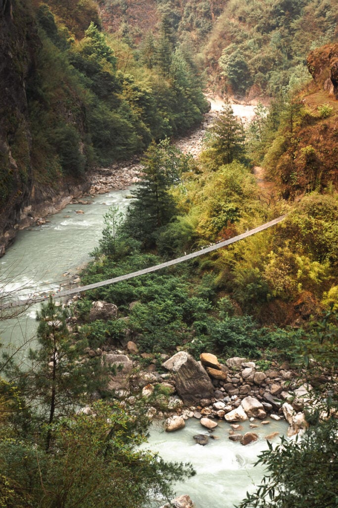 • A few stunning suspension bridges today with a lush green forest below contrast against the cool hues of the glacial river. Nepal is truly beautiful.