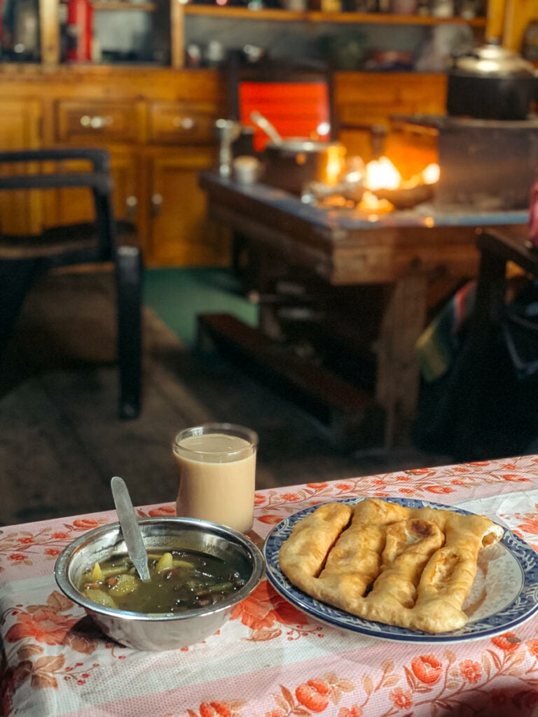 • At 4,460m, Dharma Shala is a freezing place to stay the night. With no fire or heater, we slept in all of our winter trekking gear. The hot bottle of water was the only thing adding any warmth to our bodies as we enjoyed our last sleep before attempting the Larke Pass.
